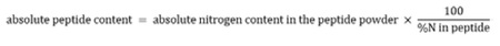 胜肽物質是凍乾粉末中唯一的氮源。因此,一旦已知粉末中氮的絕對含量,即可計算出勝肽的絕對含量: