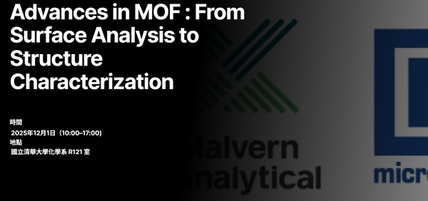 2025 AsCA (Asian Crystallographic Association) 將於台灣舉辦此活動,屆時多位Micromeritics及Malvern Panalytical原廠專家將專程來台參與此盛會。而今年亦適逢諾貝爾化學獎頒發給長期致力於 MOF 研究的學者,我們特別把握此契機,將於2025年12月1日(週一)同時於國立清華大學舉辦 MOF Day 研討會,期望藉此難得機會與台灣學術界與業界專家深入交流,共同分享最新研究成果與應用經驗。