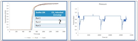 突破曲線柱內的壓力降會對實驗結果產生負面影響。柱內壓力會從入口到出口逐漸降低,這種壓力不穩定性會導致吸附容量計算不準確。如果柱上游壓力過高,會擾亂氣流,並可能阻止氣體從質量流量控制器流出。此外,如果柱上游壓力升高過大,也會損壞儀器的內部組件。為了消除穿透系統中的壓力降,應採取措施透過壓片和篩分來增加樣品的粒徑。